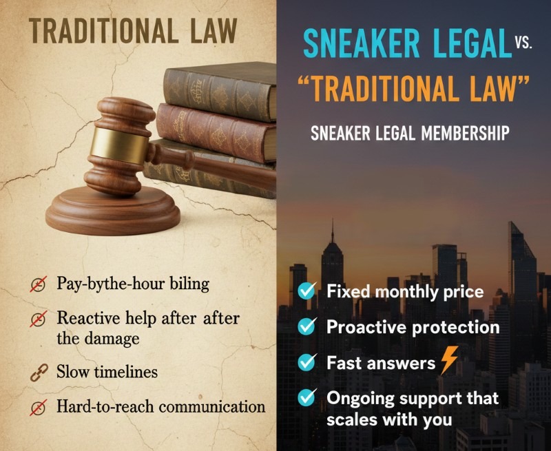 Sneaker Legal Membership is your fixed-price legal backbone β built for founders who want to scale with confidence.